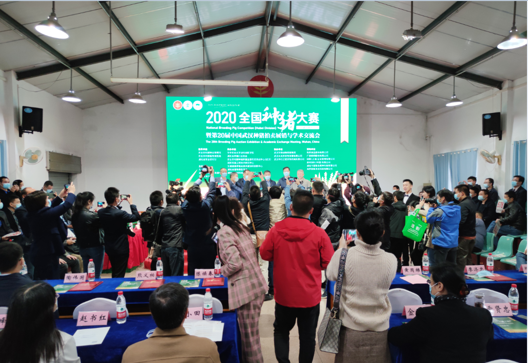 【概要描述】10月18日上午,“2020年中國農(nóng)民豐收節(jié)系列活動”——全國種豬大賽(湖北賽區(qū))暨第20屆中國武漢種豬拍賣會在華中農(nóng)業(yè)大學(xué)國家種豬測定中心舉行。簡短的開幕式過后進(jìn)入拍賣階段,來自全國的數(shù)十家生豬養(yǎng)殖企業(yè)參加拍賣會,武漢市江夏區(qū)金龍畜禽有限責(zé)任公司長白豬以4.2萬元價格被湖北金農(nóng)谷農(nóng)牧科技股份有限公司購得,成為新“標(biāo)王”。此次拍賣16頭明標(biāo)豬拍賣總價37.8萬元,暗標(biāo)56頭豬,拍得83.96萬元。